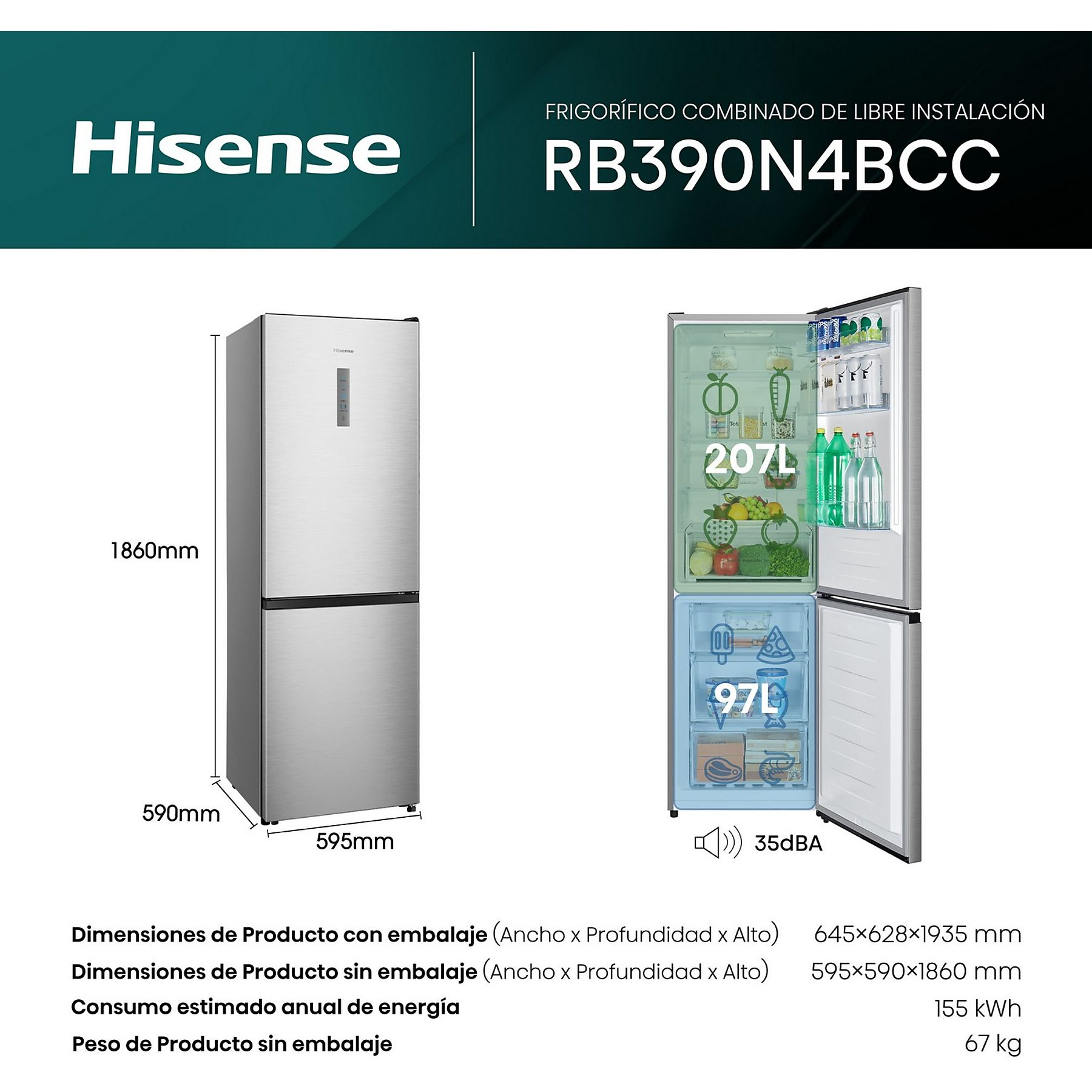 Olvídate de la acumulación de hielo tanto en el frigorífico como en el congelador. Además, mantendrá tus alimentos favoritos frescos por más tiempo. Elige la mejor opción. Con este frigorífico No Frost evita la acumulación de escarcha que producen los modelos Frost.